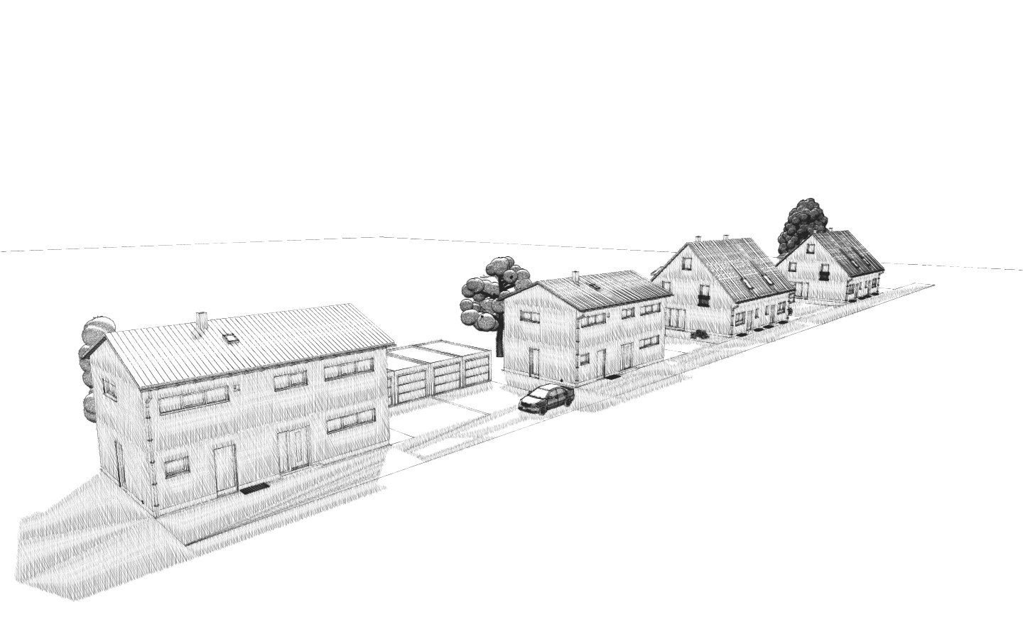 Nur 4 km von Landsberg entfernt, entstehen 2 Einfamilienhäuser und 4 Doppelhaushälften